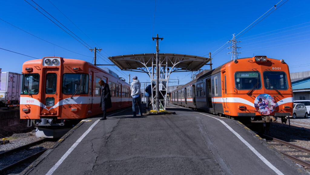 隣に停泊しているのは、富士山を挟んで反対側の富士急行から2018年に転属してきた9000形。岳南電車は富士急グループ傘下の企業なので、融通が利いたみたいです。さらに辿ると元京王電鉄の5000形であり、岳南電車は二度目のリクルート先になります。 運用上、今回は乗車できず。