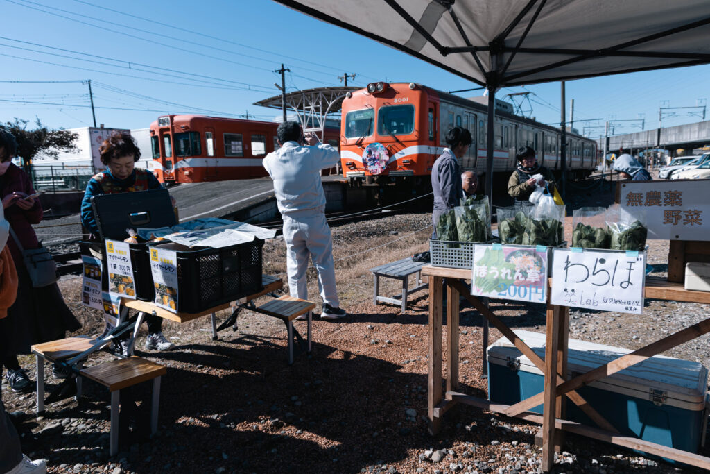「むすび日和」という小規模のマルシェが開かれていました。レモン、ほうれん草、お茶など、地元の農産物を販売しているようです。