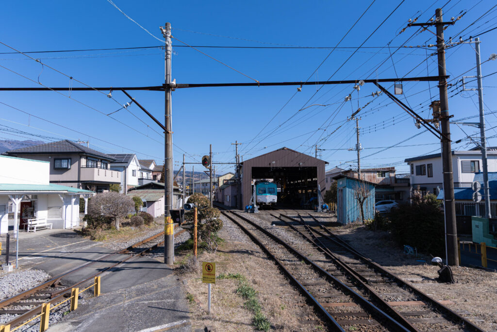 下車したのは岳南富士岡駅。駅構内に沿って研修庫があり、岳南電車における重要な駅の一つです。