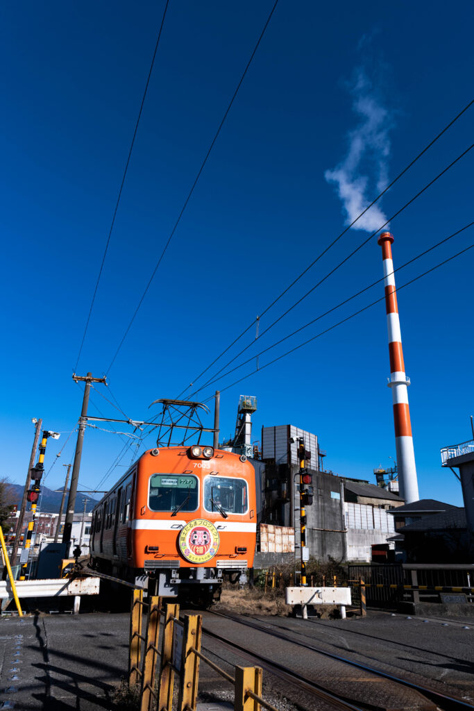 霊峰と煙突に誘われて、岳南電車をスケッチする②