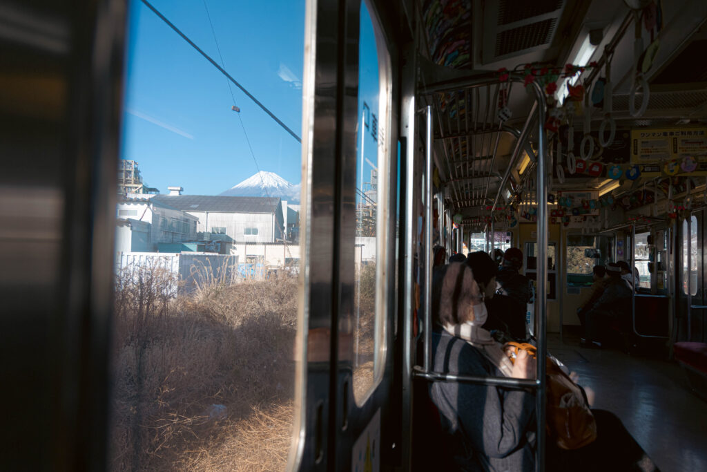 「だるま電車」というのは、吉原駅から徒歩で15分のところにある毘沙門天で、2月23日から25日(水)にかけて開催される「毘沙門天大祭」を宣伝するラッピングになります。同祭は、東京都の「深大寺だるま市」や群馬県の「高崎だるま市」と並ぶ、日本三大だるま市の一つなんだそう。そんなのあるんだね。「三大〇〇」の世界は広いですね。高崎のだるまは有名ですが、ここ富士市も「鈴川だるま」の産地として知られております。