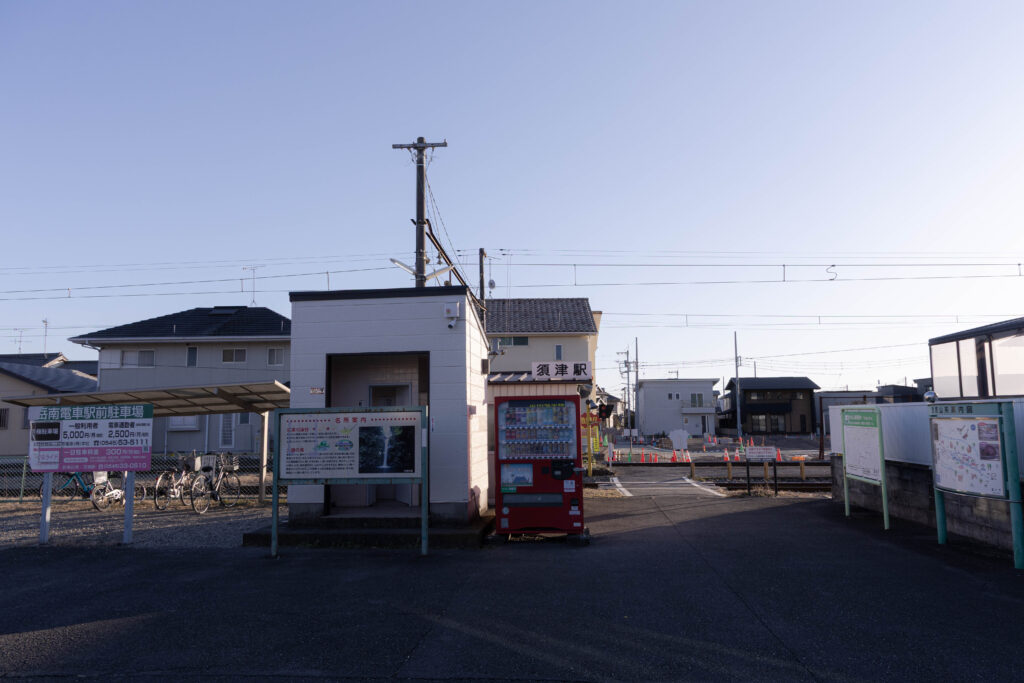 難読駅名の須津駅。「すど」と読みます。駅舎こそありませんが、それ以外のトイレ・自販機・駐輪場・案内看板といった必要な設備は揃っている模様。